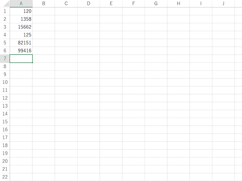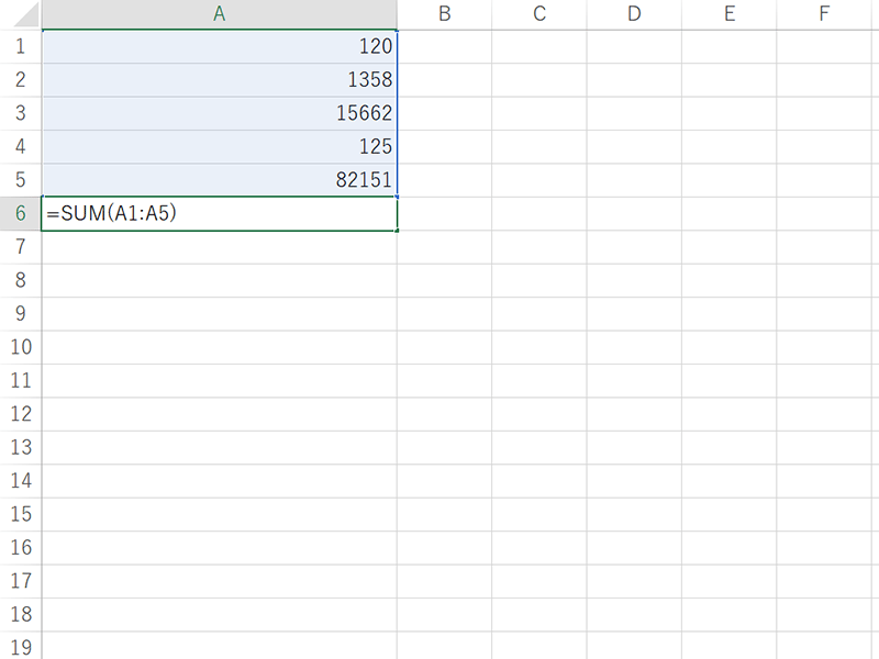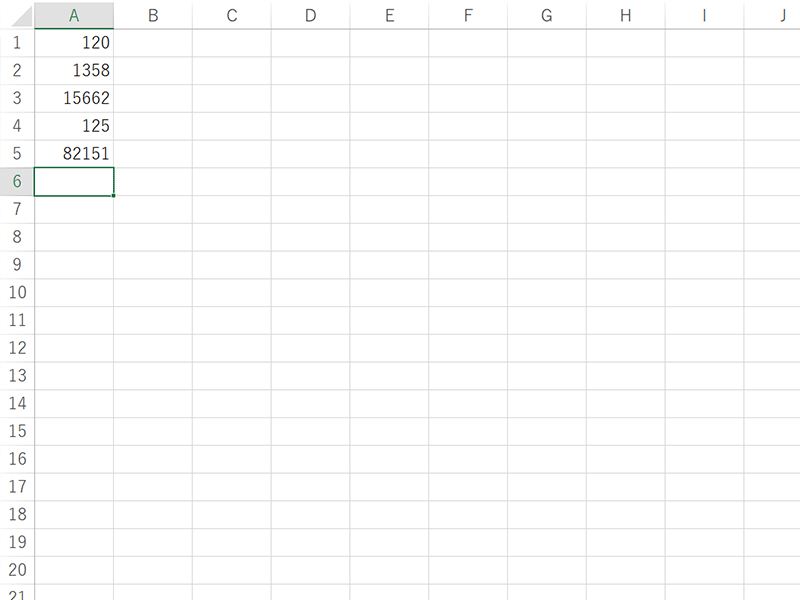 図のように、セル「A1」からセル「A5」に数字が入力されています。